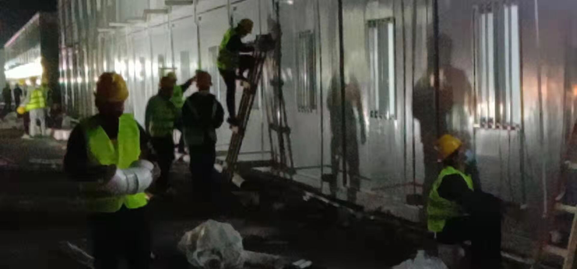 當(dāng)前,突擊隊(duì)員們?nèi)砸挂岳^日地奮戰(zhàn)在鳳臺方艙醫(yī)院建設(shè)現(xiàn)場。