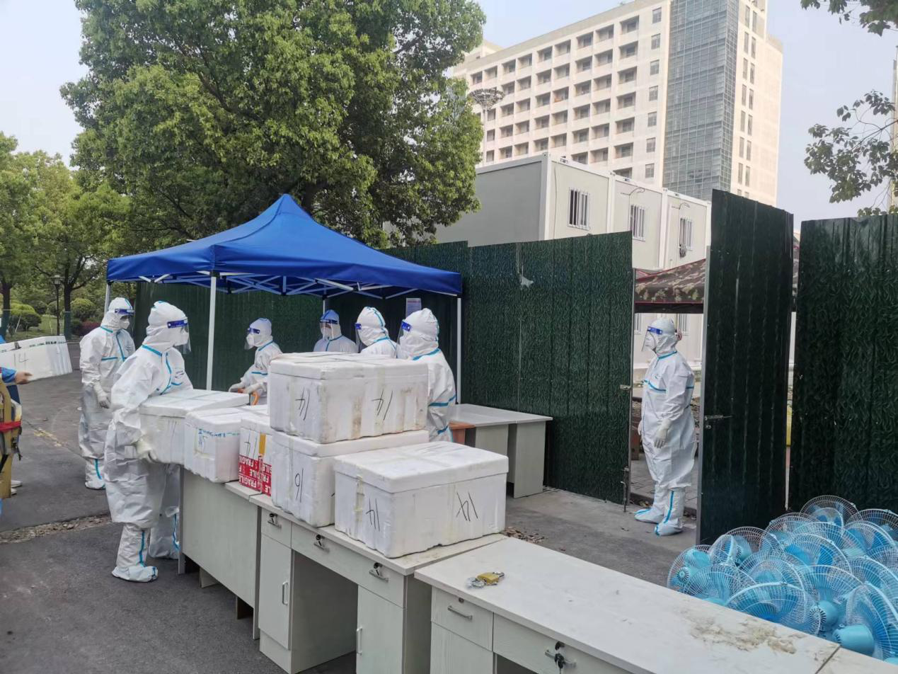 4月15日晚,接上級(jí)單位指令,公司連夜迅速組建一支14人的應(yīng)急突擊隊(duì)伍,進(jìn)駐謝家集區(qū)謝李大井醫(yī)學(xué)觀察隔離方艙,支援后勤保障服務(wù)工作。應(yīng)急隊(duì)成員經(jīng)醫(yī)護(hù)人員專業(yè)防護(hù)知識(shí)培訓(xùn)后,迅速熟悉現(xiàn)場(chǎng)并明確分工,嚴(yán)格按照方艙醫(yī)院的標(biāo)準(zhǔn)和要求開(kāi)展保障服務(wù)工作。